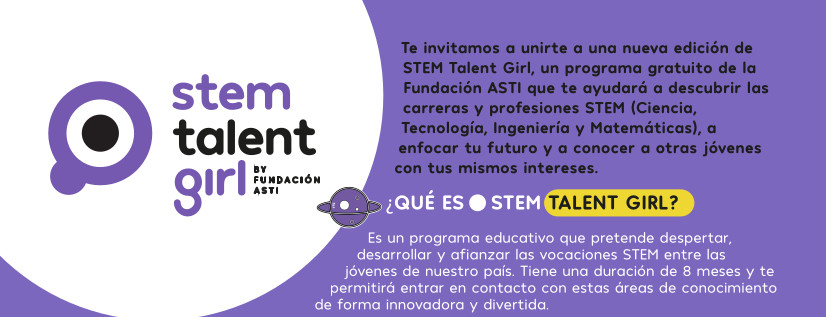 Impulsado por la Fundación ASTI y con la colaboración de la Junta de Castilla y León, el programa STEM TALENT GIRL pretende fomentar el desarrollo científico y tecnológico entre las alumnas, con el objetivo final de que disminuya el desequilibrio de género que existe en los estudios STEM (ciencias, tecnología, ingeniería y matemáticas). La edición 25-26 no ha comenzado todavía, y el plazo de inscripción está abierto hasta el 3 de noviembre.